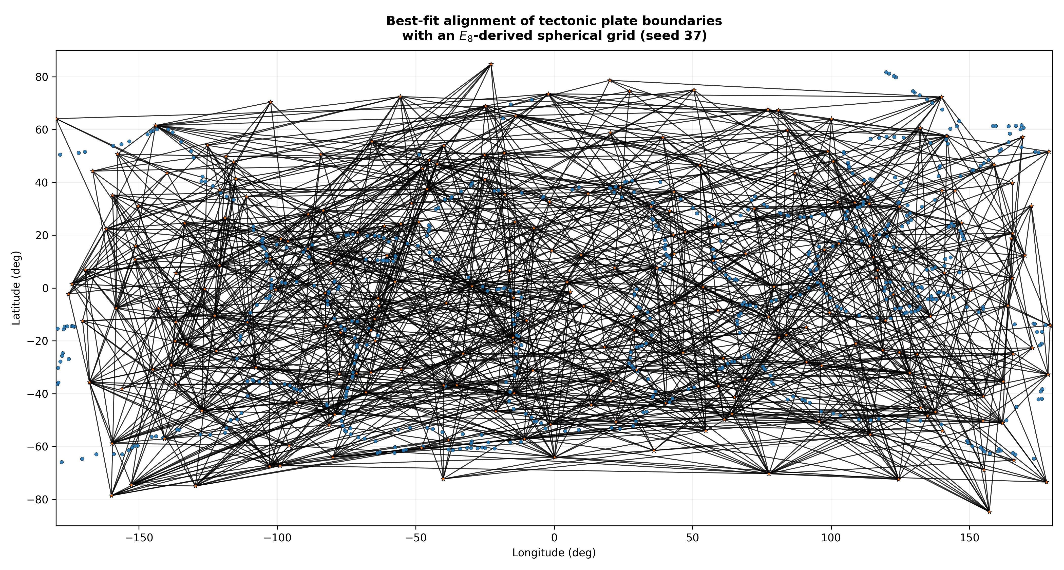 One family of these reference patterns comes from a mathematical object called E8, known for its extreme symmetry and uniformity. On a sphere, it provides a very even, unbiased distribution of directions, ideal for asking whether Earth’s systems are more organized than random.